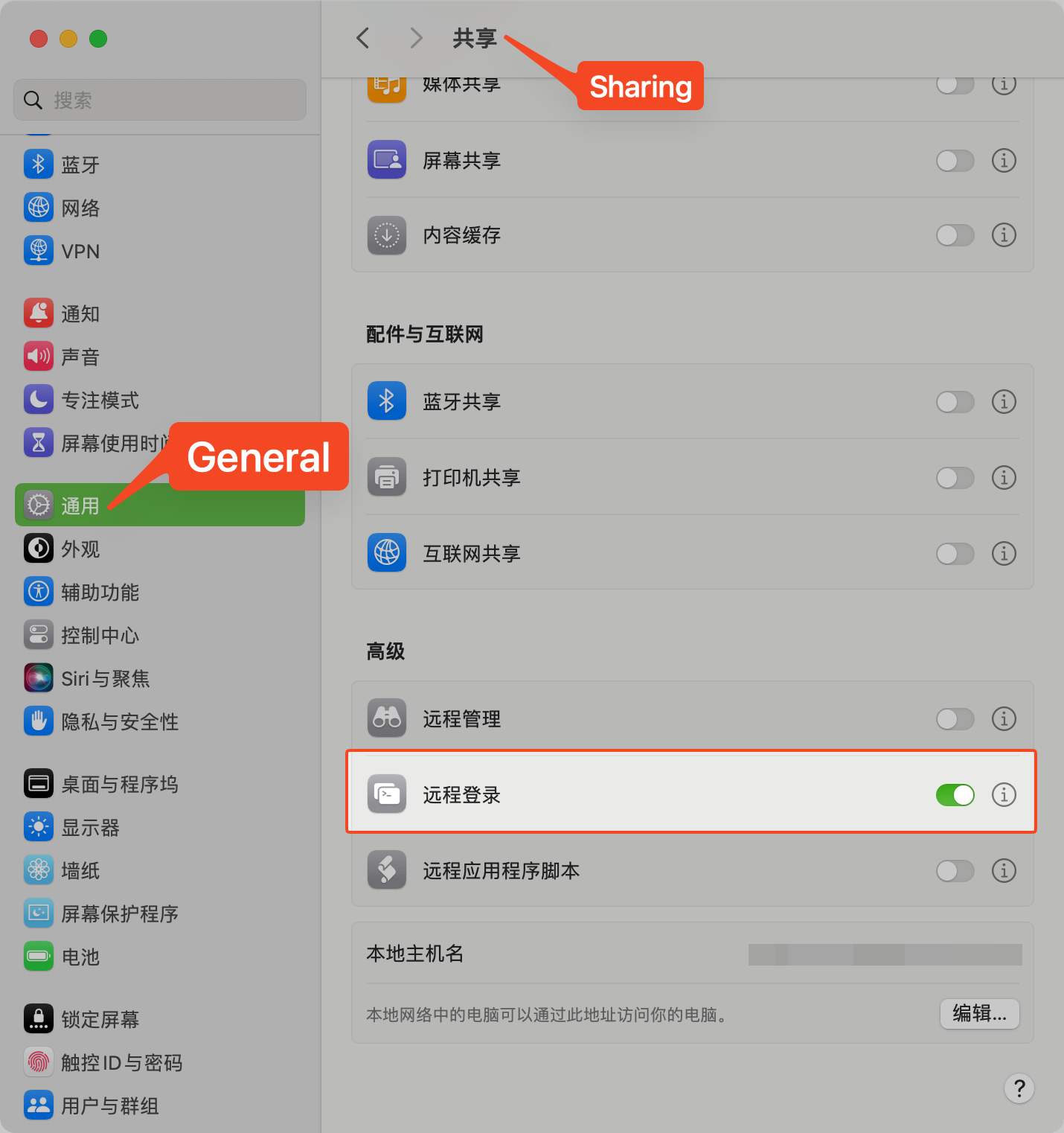 First ensure that remote access is enabled in System Settings on your local machine.